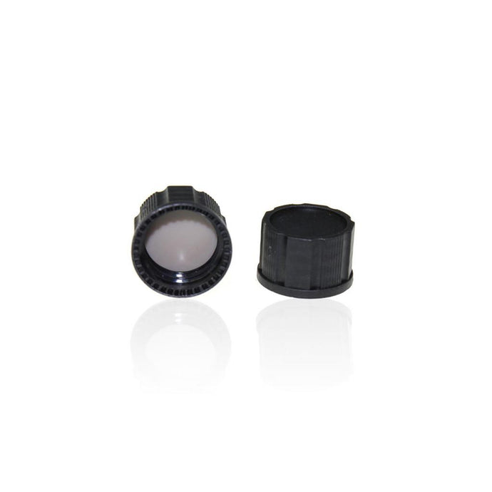 15-425 Black Closed PP Top Cap, with Natural PTFE/White Silicone Septa 1.0mm Thick. 100pcs/pk, 30pk/case.